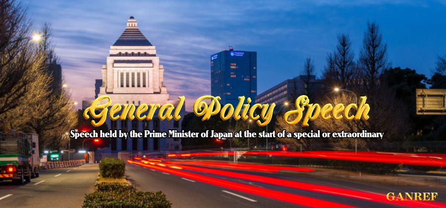 以上、ここに述べました所信に則り、必ずや、日本列島を強く豊かに、日本を再び世界の高みに押し上げてまいります。 「事独り断(さだ)む可(べ)からず。必ず衆(もろとも)と与(とも)に宜(よろ)しく論(あげつら)ふ可(べ)し」