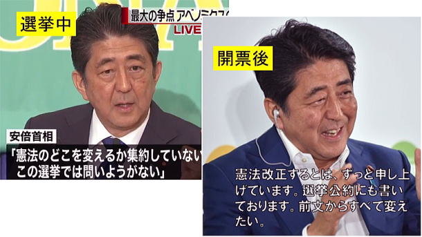 東京都知事選も最終盤。候補者レースで優勢といわれるのが元防衛相・小池百合子氏だが、本サイトでは、彼女の“本質”が極右ヘイト政治家であり、ゴリゴリのマッチョ思想の持ち主で“女性の敵”であること、東京に核ミサイルを配備するトンデモ計画を語っていたこと、他にも表現規制推進やネトサポの総指揮官だったことなど、様々にその“危険性”をお伝えしてきた。 だが、そのなかでももっとも危惧されるのが、都知事に就任した小池氏が、安倍首相とタッグを組んで、「改憲」の旗振り役を務める可能性だ。 本サイトでも何度も指摘してきたように、小池氏はバリバリの改憲派で、以前から日本国憲法への敵視をむき出しにしてきた。たとえば、自民党の広報本部長を務めていた2011年にはこんなツイートを発している。 〈本日、サンフランシスコ講和条約発効日である4月28日を主権回復記念日として祝日とする議員立法を総務会で承認し、衆議院に提出いたしました。祝日が多すぎるというなら、借り物の憲法記念日5月3日を祝日から外します。〉