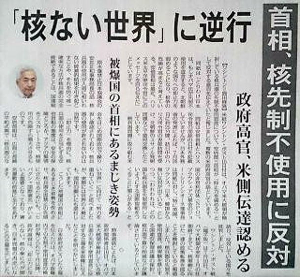 オバマ大統領が現在、検討しているとされる「核兵器の先制不使用宣言」をめぐって、安倍首相がハリス米太平洋軍指令官に反対の意向を示していたことを先週、各紙が報じた。元となったのは15日付けのワシントンポストの報道だ。 だが、昨晩、安倍首相は記者団に対し、「ハリス司令官との間において米の核の先制不使用についてのやりとりは全くない。どうしてこういう報道になったか分からない」と、ワシントンポストの報道を全否定した。 しかも、この安倍首相の否定を受けてネット上では安倍応援団が、ワシントンポストにそういうくだりはなく報道を後追いした朝日や毎日が記事を捏造した、などとわめき立て始めた。