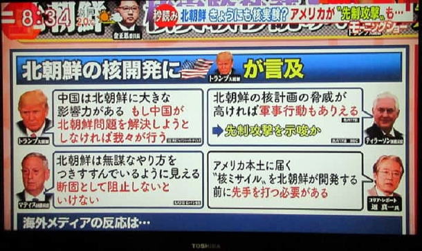 ![]() 6回目の核実験を強行した北朝鮮をめぐって4日、日米韓英仏の要請で国連安保理の緊急会合が開かれた。生命線である石油禁輸と、外貨獲得手段の繊維製品の輸出制限や出稼ぎ労働者受け入れ禁止などが話し合われた。核・ミサイル開発を加速させる北朝鮮に対する圧力を強め、さらに厳しい経済制裁を科そうというのである。 日米が中心となって強める圧力をものともせず、北朝鮮は技術開発に傾倒してきた。米国は表向きは吠え立てているが、水面下で毎日のように北朝鮮サイドと接触。対話再開の糸口を探っている。だから金正恩朝鮮労働党委員長は米国の足元を見て、着々と実験を重ね、ついに米本土を射程に収めるICBM(大陸間弾道ミサイル)と核を手にし、交渉カードを増やしている。今さら経済制裁が効くものか。 元外務省国際情報局長の孫崎享氏は言う。 「制裁強化で北朝鮮の技術開発を止めることはできないでしょう。10年以上にわたる制裁は全く効果がなかったのはハッキリしている。制裁で北朝鮮の暴走を止めるなんていう幻想は捨てるべきです。北朝鮮が核とICBMを手にしたことを認め、その前提で対話を始め、核管理システムを構築するしかこの問題の解決策はありません」 北朝鮮の言い分によれば、米国主導による金正恩の斬首作戦や金王朝の崩壊を恐れ、核武装に突っ走った。制裁を強めるより、挑発的な米韓合同軍事演習をやめた方がよっぽど効果が上がる。 日本上空を通過した北朝鮮による中距離弾道ミサイル発射以降、トランプ米大統領は安倍首相と4回も電話会談。北朝鮮が水爆実験を実施した3日は午前、午後の2回に及んだ。安倍は「北朝鮮に対する圧力を高め、政策を変えさせていかなければならない点で完全に一致した」とイキリ立ち、圧力路線の強化を誇示。トランプと安倍がわめいたところで、金正恩には圧力が少しも効かなかった。それでもなお圧力を強調するのは、軍事力行使に向けた手順を踏もうとしているからではないのか。 トランプは4日、ツイッターで「北朝鮮とビジネスをする全ての国との貿易停止を検討している」とつぶやき、独自制裁の大幅強化を表明。マティス国防長官も「北朝鮮の壊滅は望んでいないが、そうするための多くの軍事的選択肢がある」と異例の強い表現で警告。空爆を示唆した。 高千穂大教授の五野井郁夫氏(国際政治学)は言う。 「トランプ大統領はおそらく、北朝鮮への先制攻撃をシリア空爆と同程度に捉え、簡単にできると考えているのでしょう。支持率が回復し、世論の後押しさえ得られれば戦争をやりたいと思っているフシもある。しかし、軍事的圧力は外交が失敗した場合の最終手段。北朝鮮の応戦で長引けば議会の承認も必要になる。容易には踏み出せません。ただ、戦争になればもちろんのこと、脅威を煽るだけでも米国製兵器が売れ、軍需産業が確実に潤っています」 米国の思惑通りに動き回っているのが、米国との一体化を望む安倍だ。安保法制で集団的自衛権行使を可能にし、米国と一緒に戦争のできる国へ作り替えた。安倍の再登板以降、防衛費は右肩上がりで増え、2018年度予算案の概算要求は前年比2.5%増の約5.3兆円と過去最大に膨らんだ。北朝鮮危機を口実に前倒し購入を決めた米製地上配備型迎撃システム「イージス・アショア」の2基分相当の1600億円相当は含まれていない。 どの道を選んでも米国に損はないのだ。