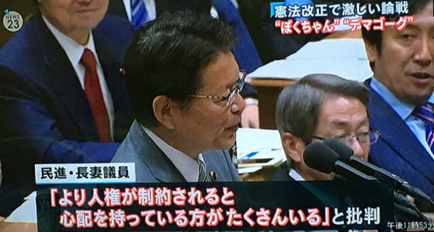 いやいや、安倍首相本人が「憲法改正草案をベースに議論をする」と言ってきたのに、「谷垣時代のものだから」なんて言い逃れが通用するはずがない。これには長妻議員も「『谷垣総裁のときに世に出したものだから、ぼくちゃん知らないよ』というように聞こえた」と応戦したが、安倍首相はこれに激昂したのか、感情的になったときに必ずみせるいつもの早口で、とんでもない話をはじめたのだ。 「『谷垣さんのときに決めたんだから、ぼくちゃん知らない』なんて、私、一言でも言いました? まったく言っていないことを言ったかのごとく言うっていうのは、これはデマゴーグなんですよ。これ典型例ですね」 「ぼくちゃん知らない」というのは、まるで幼稚園児のような道理の通らない責任逃れをするから「ぼくちゃん」と表現しただけだ。それを「デマゴーグだ!」とがなり立てるとは……。これが宰相の発言かと思うとつくづく情けなくなる。 しかも、安倍首相は「(憲法改正草案を)世に出したのは私ではない」と言うが、これこそ大いなる屁理屈だ。たしかに憲法改正草案を自民党が発表したのは2012年4月であり、谷垣総裁時代にあたる。だが、その中身は、完全に安倍マターでつくりあげられたものなのである。