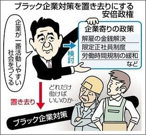 ![]() 大メディアによると、20日召集の通常国会での最大のテーマになるらしい。安倍首相が「断行の年」と意気込む「働き方改革」のことである。 昨年末に安倍政権は、非正規労働者と正社員の不合理な格差をなくすための「同一労働同一賃金」のガイドライン案を公表。通常国会には時間外労働に上限規制を設けるため、労働基準法の改正案を提出する。 5日の経済3団体共催の新年祝賀会でも、安倍は「仕事と子育てや介護を無理なく両立できるようにする」と訴え、並み居る企業トップを前に「4年連続のベア」も要請した。 すっかり野党のお株を奪うような労働者の味方ヅラなのだが、一方で安倍は「アベノミクスをしっかりふかす」と年頭会見でも断言。いまだ「2020年ごろにGDP600兆円」という途方もない目標を下ろさず、あくまで経済成長を追求している。とことん欲張り過ぎな男である。 異次元レベルの金融緩和を4年近く続けても、物価上昇率目標2%を一度も達成できず、消費は凍りついたまま。1世帯当たりの消費支出(実質)は昨年2月の「うるう年効果」を除けば、実に15カ月連続で前年同月比マイナス。庶民のフトコロも冷え込みっ放しで、安倍のベア要請も空しく、実質賃金はこの3年で年17万5000円も減ってしまった。 安倍が国を挙げて低成長を受け入れる成熟社会づくりを打ち出したのなら、いざ知らずだ。アベノミクスの完全破綻で日本経済をメタメタにしておきながら、残業をなくし同一労働同一賃金を実行し非正規差別を撤廃させ、賃上げ、経済成長も成し遂げる。そんな“四兎”も“五兎”も追いかける夢物語をどうやって実現するというのか。 我が身を省みず、バラ色の未来を吹きまくる安倍のオツムはどうかしているし、空しい理想論を無批判に垂れ流す大メディアも同罪だ。確かに、電通の若手女性社員の過労自殺以降、長時間労働是正の機運は高まっているが、その流れに便乗しただけのようなペテン政権の口八丁、三百代言のたわごとをマトモに受け取るわけにはいかないのだ。