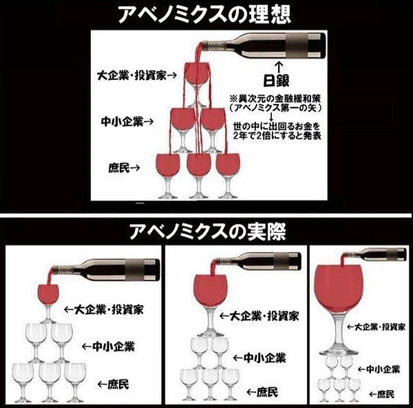 しかも、従業員の賃金が減らされる一方で、役員の報酬は増加している。同じく10億円以上の大企業では、総額(8600億円)でも一人当たり(1865万円)でも前年度を上回っているのだ。1億円を超える報酬を取っている経営者は上場企業で昨年443人だったが、今年は503人に増えた。格差はどんどん拡大している。さらに、株主への配当金は前年度の1.4倍を超える17.3兆円、株を持っている人はウハウハだ。そして、大儲けした企業から国が徴収する3税負担額は前年度を200億円も下回った。 もう、おわかりだろう。安倍の言う「世界でもっとも企業が活動しやすい国」というのは、「下々」にしわを寄せ、格差をつくることで成り立っているのである。にもかかわらず、安倍首相は「アベノミクスのエンジンをブンブン吹かす」などと、ふざけたことを言っているのだ。