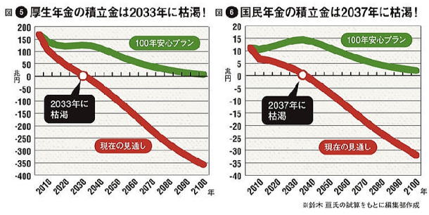 消費税を8%に上げた時の経済失速を見ると、増税がいかに危ういものかという事が分かります。これ以上、国民の財布の紐が閉まるようになってくると、経済が一段と冷え込んで、税収が減少する事で、日本の財政状況が更に厳しくなることが予想されます。政府は、外債の発行を行う事になっていきますが、外国債の発行を行う事は、通貨を外国にコントロールされやすくなるので、日本国内で通貨がコントロールできなくなる危険を伴う事になります。 日本の場合には、外債を発行して外国に購入して貰うと言っても、その金額が莫大なので、そもそも『購入できる国がほとんどない』という事になります。また、外債を発行するまでになった『安全性も高くない』かつ『金利も低すぎる』外債を買う人など世界中のどこにもいません。 言い換えれば、外債を発行するのであれば、金利3〜5%にしなければならず、そんな高い金利を付けていたら、日本の財政はあっという間に破綻してしまいます。簡単に言えば、外債を発行するというプランが現実的ではないことが分かります。 年金の積立金は、厚生年金が2033年に枯渇、国民年金が2037年に枯渇すると予想されています。この年金枯渇を避けるためには、支給年齢を引き上げるしかありません。