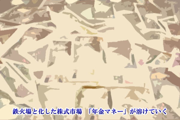 鉄火場と化した株式市場 「年金マネー」が溶けていく 2016年1月9日 日刊ゲンダイ 下がり続ける相場を呆然と眺めているしかないのか。8日の日経平均株価は、大発会から5日続けての下落を記録。これは戦後初めてのことだ。株価が下がれば日銀やGPIFが買い支える官製相場に慣れっこになっていたマーケットはパニック状態に陥った。 ところが、この異常事態に、麻生財務相は「中国の市場の影響が大きかったと思いますけど、日本の経済自体のファンダメンタルズが悪いわけではない」とお気楽なことを言い、甘利経財担当相も「外的要素が非常に大きい」とまるで他人事だった。 株価が上がれば「アベノミクスのおかげ」と胸を張り、下がれば原油安と中国株のせいにするのがお決まりのパターンとはいえ、今回はさすがに危機感がなさすぎるのではないか。8日は中国株が反転上昇したにもかかわらず、日本株は続落したのである。ここが深刻なところだ。
