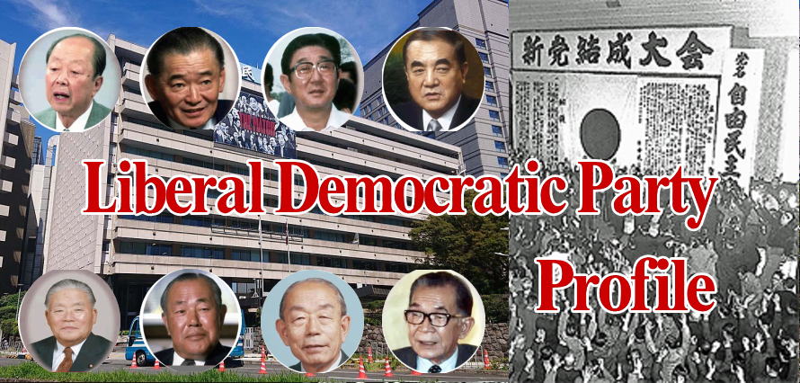 1955年(昭和30年)に日本社会党の台頭を危惧し、かつての自由党と日本民主党が合同して結成された政党である。以来、日本社会党と約40年に及ぶ保革対立の政治構造である「55年体制」を形成した。