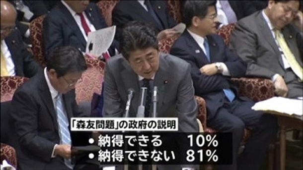 このように『NEWS23』は、その後も加計問題含め、安倍首相本人にもち上がっている疑惑の数々をぶつけていったのだが、これにネトウヨが大反発。星キャスターのイヤホンから「2人でもりかけ」というディレクターの指示の音声が漏れていたことを、鬼の首をとったかのように騒ぎ立てたのだ。 時間が限られている生放送でダラダラと自分のPRだけやろうとした安倍首相に対し、番組側が少しでも国民が注目する部分に話をもっていこうと努力するのは当たり前のこと。だいたい安倍首相自身が「丁寧に説明する」と言って憚らないのだから、偏向報道でも何でもない“お墨付き”の話題であるはずだ。それをあたかも不正がおこなわれたかのように騒ぎ立てるのはいかにもネトウヨらしい行動といえるが、なんと昨晩、あろうことか安倍首相本人が「イヤホンちょっと大丈夫ですか」と星キャスターに言い、生放送でネトウヨの指摘を“実行”してみせたのだ。しかも、党首討論という国民が注視する場で、である。 恥も外聞も無いこの態度には、ただただ言葉を失うしかない。それは星キャスターも同じことだっただろう。星キャスターは突然飛び出した安倍首相の言葉に苦笑いを浮かべ、だが怯むことなく「加計問題も安倍総理のリーダーシップによっては国民の納得できる情報公開はできるが」と質問した。 しかし、安倍首相はその質問には答えることなく、「いちばん大切なことは私が指示したかどうかですが、私から頼まれたと言う人は誰もいない」と、またも同じ話の繰り返し。都合のいい話を一方的にまくしたてた。 それでも星キャスターは「国民の素朴な感覚からすると、国家戦略特区という新しい枠組みができて、そこで認可されたのが安倍総理のお友だちの学校でした、というのを国民が見て『なんかこれヘンじゃないの?』という意識を国民がもっているということじゃないでしょうか。国民がそういう意識をもつのは、不自然ですかね?」とさらに質問を重ねた。 だが、ここで安倍首相はおかしな行動に出る。「私が言っても」と口にし、意見しようと挙手していた日本のこころの中野代表に発言を譲ったのだ。そして、中野代表は「(国民が不信感をもつことは)ほんとうに不自然ですよ」と断言。国会の議論も「8割がもりかけ」だと憤慨し、「ちゃんと説明してるでしょ、安倍さんが! にもかかわらずそっちのほうにわざと質問を誘導してですね……」と安倍首相を代弁したのだ。