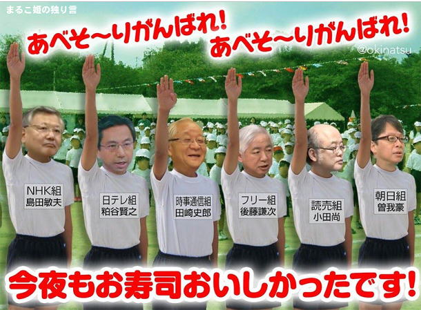 そしてレイプ犯、山口敬之、勲氏、NHKの安倍番記者、岩田明子氏も仲良しグループで、昭恵夫人経営の居酒屋に集合しています。
