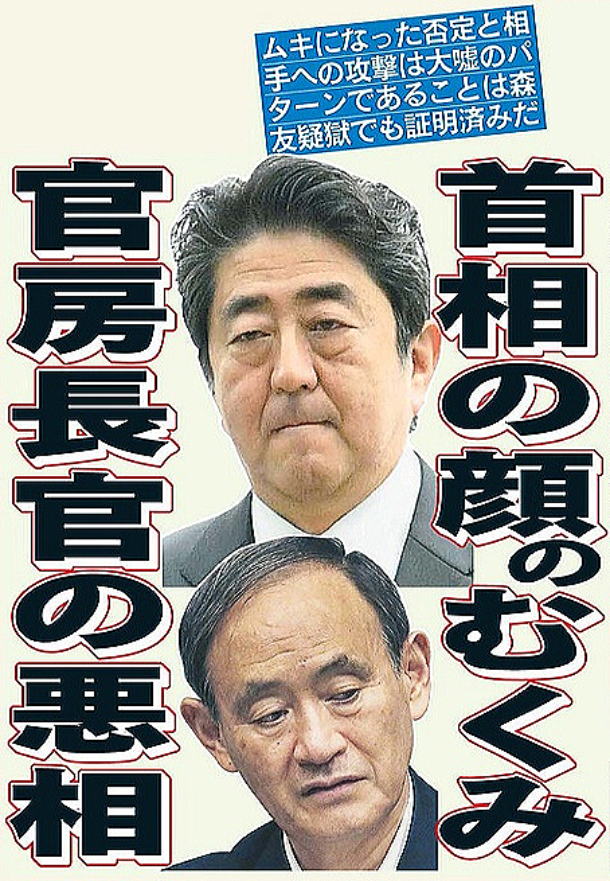 ![]() 「顔色が悪い」「顔がむくんでいる」――。国会答弁やぶら下がり会見での安倍首相を見て、永田町でまた、そんな声が上がっている。そりゃそうだろう。今年2月に森友学園疑獄が炸裂して以来、安倍にとってストレスがたまる問題ばかり続発しているのだ。 北朝鮮のミサイル発射に対する強硬姿勢で内閣支持率こそ微減で済んでいるが、金田法相に代表される閣僚のおバカぶりに悩まされ、「退位」をめぐる政府の有識者会議について「天皇が不満」という報道の激震、外交もやりたい放題のトランプ米大統領にマトモに相手にされず……。 そこへもってきての加計学園疑惑である。森友問題は“アッキード事件”だったが、加計は安倍の「腹心の友」への便宜供与が疑惑の核心。安倍本人が主人公であり、自ら疑惑のド真ん中にいるのだから、ストレスが頂点に達していることは想像に難くない。持病の「潰瘍性大腸炎」に、ステロイドだって効かなくなる。顔がむくむのも無理はない。 そんな健康状態では、精神だって不調を来す。だからだろう、一昨日(5月30日)の参院法務委員会での答弁は、いつものエキセントリックさに磨きが掛かっていた。 民進党の小川敏夫議員が、加計問題で「文科省の文書は本物」と告発した前川喜平前文科事務次官の証人喚問を求めると、安倍は聞かれてもいないのに、「国家戦略特区は岩盤規制にドリルで穴をあけるもの。抵抗勢力に屈せず前へ進める」と大演説。 その上で「印象操作だ。私が友人である加計さんのために便宜を図ったという前提で恣意的な議論だ」とムキになって怒り、揚げ句には、「知り合いだから頼んだことはないと何回も申し上げている。そうではないというのなら、小川さんが証明していただきたい」と声を荒らげたのだ。 これには弁護士出身の小川議員も、「裁判じゃない。疑惑を招いたら自ら積極的に証明するのが政治だ」と呆れた様子だった。 おかしいのは安倍だけじゃない。加計疑惑に対する菅官房長官の過剰反応も異常としか言いようがない。文科省の文書を中身も精査せず「怪文書」と断定。前川氏に対しては「地位に恋々」と個人攻撃。「出会い系バーで女性に小遣いを渡した。さすがに強い違和感を覚えた」と蔑むような表情で薄ら笑いまで浮かべる。「ちょっとやり過ぎ。安倍政権を倒そうとしているのか」(自民党ベテラン議員)とブラックジョークを囁かれるほどなのだ。 前川証言を「勝手に言っているだけ」と突っぱねるくせに、「総理の代わり」と発言したという和泉首相補佐官や文科省の役人の「確認できない」という発言は信用する。どう考えても理にかなわない。前川氏は当時の文科省トップだ。それが自ら見聞きしたことを告発しているのだ。官僚機構においてこれ以上、重い事実はない。 さすがに自民党内でも異論は出ていて、石破元幹事長は「事務方トップにいた方の発言には意義がある」と言った。都議選で小池新党を応援するためという理由はあれ、若狭衆院議員も「菅長官、文科省の進め方には問題がある。ごまかしだ」と批判、きのう自民党を離党した。 日経新聞電子版の「クイックVote」では、8割が「政府の説明に納得できない」と答えている。これが当たり前の感覚である。 コラムニストの小田嶋隆氏が言う。 「これまで安倍政権は、さまざまな疑惑が浮上しても『批判は当たらない』などとテキトーな説明をして逃げ回ってきた。それでも支持率が下がらなかったので調子に乗ってしまったのでしょう。今回は対応を誤ったと思います。とぼけて『のらりくらり』ならば、国民は『あー、答えられないんだな』と思うだけですが、今回は内部告発した人を積極的に攻撃し、潰しにかかった。それも、ただ告発証言を否定するだけでなく、醜聞まで読売新聞に書かせたと国会では言われています。そんな政権に、国民も薄気味悪さを感じて、ドン引きですよ。薄ら笑いしながら人を攻撃するような官房長官も『時代劇の悪代官』の印象です。墓穴を掘ったと思います」
