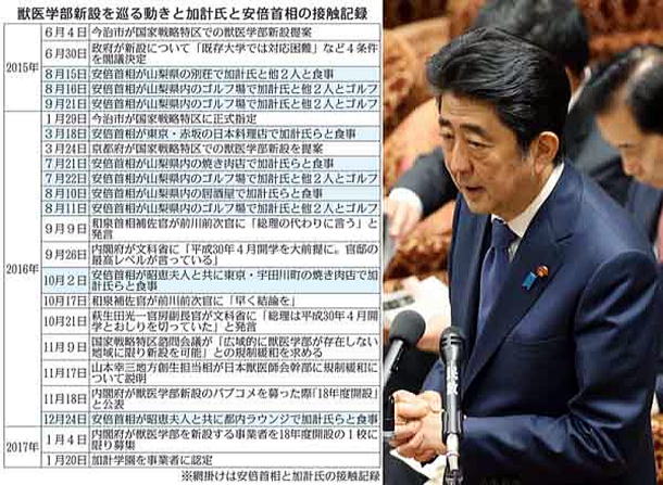 加計疑惑は発覚当初から、安倍による国政私物化の“本丸”といわれ、“真っ黒”だった。 加計学園の加計孝太郎理事長(65)は、安倍にとって米国留学時代からの親友だ。第2次政権発足以降、ゴルフや会食で首相動静に13回も登場。安倍が加計系列の千葉科学大の式典に出席した際、「まさに腹心の友だ」と祝辞を送ってもいる。 加計学園の獣医学部新設計画は古い。愛媛県今治市は県とともに2007年から誘致していて、小泉政権が始めた構造改革特区に15回も申請、しかし「獣医師は足りている」と却下されてきた。ところが、安倍政権が14年に国家戦略特区をスタートさせると、状況は一変。昨年1月、安倍政権は広島県と一体で今治市を国家戦略特区に指定。 くだんの文科省文書に見られるやりとりがあった直後の11月の諮問会議で、「広域的に獣医師養成大学が設置されていない地域に限り」との条件付きで、獣医学部新設が認められたのだ。実に52年ぶりのことである。 その後の経過も異例だ。今年1月、内閣府と文科省は、来年4月に開設する1校に限り、特例で獣医学部の新設を認め、事業者を公募した。申し込み受け付けはわずか8日間。手を挙げたのは加計学園だけで、あっさり認められたのだった。 さらに特別扱いは続く。今治市は36億7500万円の市有地を獣医学部の用地として無償譲渡する上、県と共同で最大96億円の施設整備費まで負担する。実に合計約133億円もの便宜を図る厚遇ぶりだ。2月に市議選が行われたばかりなのに、新しく選ばれた市議への詳細説明が行われる間もなく、初議会の初日に無償譲渡案は可決された。来年4月開設に間に合わせるためのスピード決定だった。 異例特例がこれだけ重なれば、安倍の意向が働いた「加計ありき」が疑われるのは当然である。 月刊誌で「加計理事長が“首相の後ろ盾”をほのめかしていた」ことをリポートしたノンフィクション作家の森功氏はこう言う。 「加計系列の千葉科学大では、安倍首相だけでなく、石原伸晃大臣も式典に駆け付けていたし、萩生田光一官房副長官は落選中に客員教授をしていました。加計側が政治を利用していたのは間違いありませんが、安倍首相はそれに乗せられていたというより、『積極的に応援していた』と言っていい。昭恵夫人は加計理事長と一緒に、しょっちゅう海外に出掛けてもいましたしね。このタイミングで文科省から文書が出てきたのは、首相の意向を受けた内閣府の強引さへの反発や危機感があるからじゃないか」 だとしたら、安倍独裁に耐えかねた内部告発はまだ続くだろう。