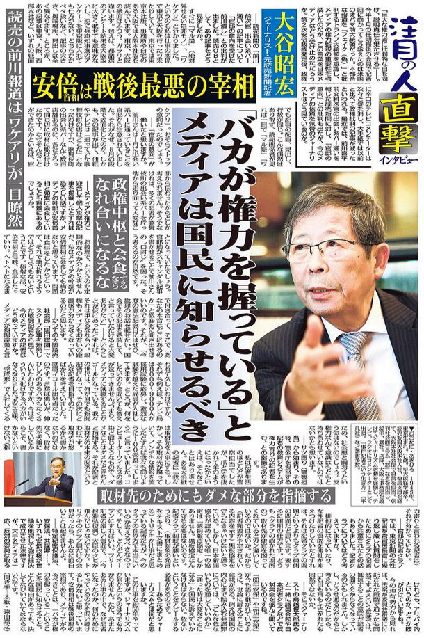 本サイトが報じた通り、明日発売の「週刊文春」(文藝春秋)が元文科省事務次官・前川喜平氏のインタビューを掲載していた。タイトルは、ずばり〈「『総理のご意向』文書は本物です」文科省前事務次官独占告白〉。 本サイトでは、読売新聞が22日の朝刊で前川氏の「出会い系バー通い」報道が「官邸による加計学園問題の実名告発ツブシの謀略」であることを伝え、さらに官邸が「週刊文春」と「週刊新潮」の両誌にも出会い系バー通い疑惑をリークしたものの、「どちらかの週刊誌が前川氏の言い分を全面的に掲載し、官邸の謀略の動きを暴く」と報じたが、その通りとなったのだ。 「週刊文春」の記事は、文書では見えてこなかった省庁間の子細なやりとりや経緯が前川氏によってあきらかにされており、国家戦略特区による獣医学部新設がいかに加計学園ありきで進められたのかを裏付ける証言になっているという。 「『週刊文春』は、前川氏の告白を6ページにわたって紹介。そのなかで前川氏は、タイトル通り、一連の文科省作成の文書が『本物』であると断言しているのはもちろん、前川氏自身もいくつかの文書を保管していることや、それらを作成した担当セクション名やどういうシチュエーションで前川氏に渡されたのか、さらには『総理のご意向』と内閣府から突きつけられ、プレッシャーを感じたことなどを語っているそうです」(週刊誌関係者) また、前川氏は読売新聞の「出会い系バー通い」疑惑にも言及し、その事実を認めた上で“違法な行為はしていない”と話している、という。 一方、「週刊新潮」のほうは、問題の「出会い系バー」で取材を行い、前川氏の買春疑惑を報道。しかし、決定的な証拠などは書かれておらず、逆に読売の情報元は官邸であり、下半身スキャンダルによって前川氏に報復するとともに、前川氏の実名告白を報じないようマスコミを牽制する目的であったことを報じているという。 「リテラが記事に書いていたように、『週刊新潮』も読売の露骨な記事を見て、官邸の情報にそのまま乗っかることを避けたようですね。あと、前川氏の出会い系バー通いは事実だったようですが、“未成年を買春した”などの違法な話は出てこなかったらしい。これでは記事になりませんからね」(同前)