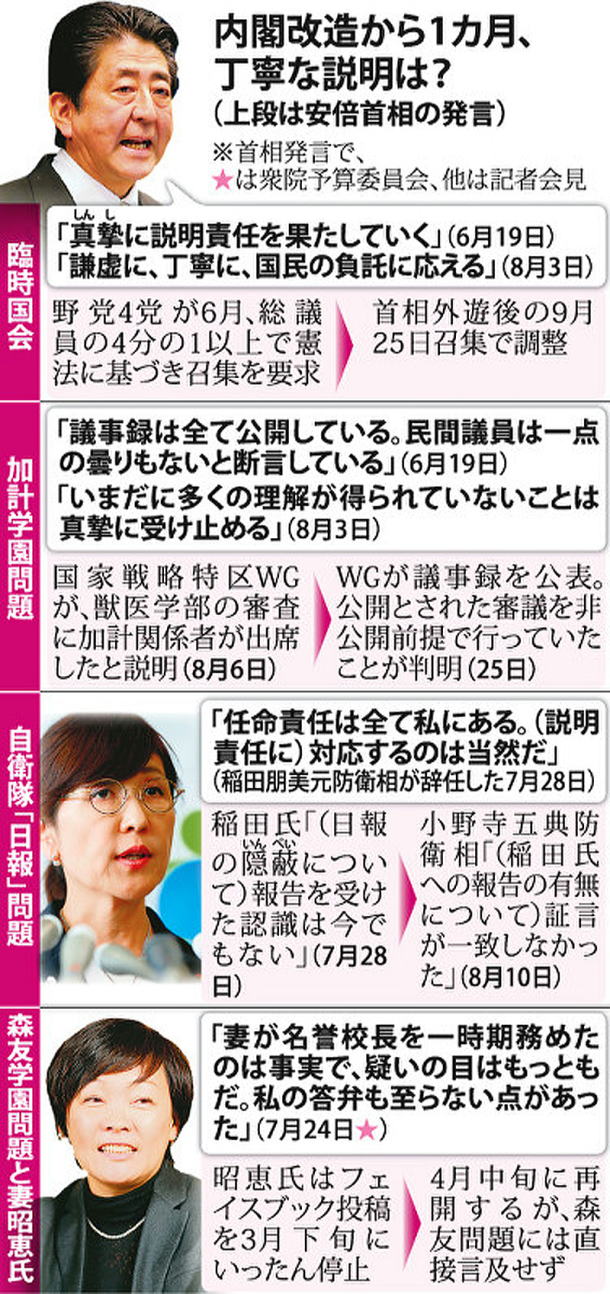 何よりも、お友達だけを優遇し逆らうものは許さない排他性と独善が、安倍という人物の本質なのだから、どうしようもない。 森友問題を巡っては、もともと籠池泰典元理事長を「教育に対する熱意が素晴らしい」と持ち上げていたのに、疑惑が“炎上”した途端、「非常にしつこい人物」と手のひら返し。きのう出演したTBSの番組では「籠池理事長は詐欺で起訴された人物」とすっかり罪人扱いで切り捨てた。 加計問題だって、“腹心の友”の獣医学部新設のために行政をネジ曲げ、国家戦略特区制度を悪用し優遇した。 閣僚人事でも、安倍のエコヒイキは露骨だ。“お気に入り”の稲田朋美前防衛相が、国会でいくらメチャクチャな答弁をやらかしても、内閣改造のギリギリまでかばい続けた。 その一方で、意に沿わぬ官僚は容赦なくバッサリだ。安倍政権は14年5月に「内閣人事局」を設置。官僚の人事を掌握すると、政権の方針に異議を唱える各省の幹部官僚の昇格見送りなど露骨な“みせしめ人事”がはびこるようになった。 今や霞が関全体が人事権をタテにした恐怖政治に震え上がり、安倍は権力私物化のやりたい放題である。 今度の総選挙で有権者が安倍自民党を勝たせてしまえば、これほど危うい人物が明治憲法下の天皇大権に匹敵する地位を占める恐れが生じてくる。 安倍改憲の狙い通り自衛隊が憲法9条に明記されると、自衛隊法に基づく首相の最高指揮監督権と防衛出動(=開戦)命令権が一層強まってしまう。危険な首相の一存だけで、この国は戦争の惨禍へと突っ走りかねないのだ。 「安倍首相にそんな力を持たせていいのか。有権者は思案のしどころです。今度の選挙の争点は全ての“アベ的”なものへの審判です。思いつきの“大義”を掲げて疑惑追及から逃れ、国民不在の国会運営で憲法を踏みにじり、民衆の自由を束縛し、やりたい放題。おまけに軍事対立をあおって、戦争も辞さない発言を繰り返す人物に、この先も政権を委ねていいのか。有権者は冷静に判断すべきです」(五十嵐仁氏=前出) 誰だって、こんな首相と心中なんてごめんだろう。有権者は今度の選挙で何をすべきか。その答えはおのずと見えてくる。 日刊ゲンダイ 2017年9月26日