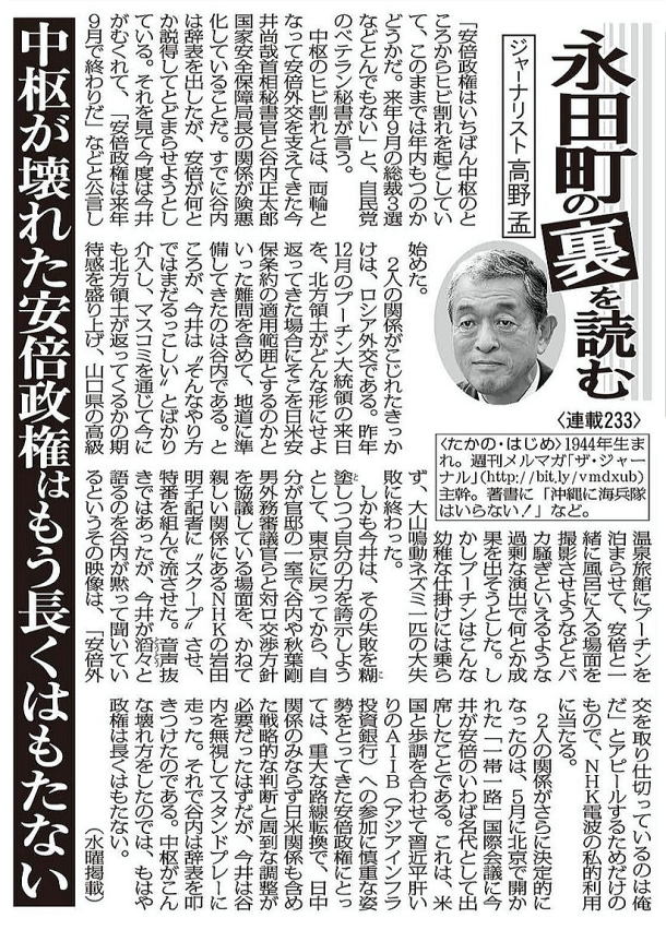 | 出典 LITERA 2017.01.25/日刊ゲンダイ 2017年1月25日 |