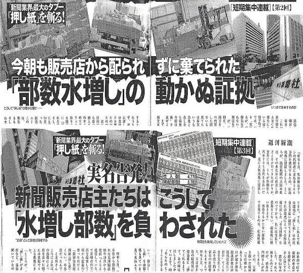 しかし、不思議なのは、なぜ、注意を受けたのが朝日新聞だったのか、という点だ。というのも、「押し紙」は新聞全紙がやっているうえ、一番有名なのは読売新聞だったからだ。 たとえば、2009年には「週刊新潮」(新潮社)が読売新聞の販売店主の実名告発で「押し紙」問題を連続して取り上げ、大きな注目を集めた。 「わたしは今年3月まで、滋賀県で2店のYC(読売新聞販売店)を経営していました。配達していた朝刊は約7000部。しかし、読売新聞社は一方的に毎朝8750部もの新聞を搬入し続けていました。当然、1750部は配達されないから販売収入もありませんが、その分も卸代金を請求されたのです」(09年6月11号より) 「週刊新潮」では他にも複数の販売店主からの証言や、「押し紙」が回収され、古紙として売られる現場写真を掲載するなど追及を続けたが、しかし、一連の記事に対し、読売新聞は新潮社と執筆者でジャーナリストの黒薮哲哉氏を名誉毀損で提訴した。 裁判は最高裁まで争われ、その過程で、さまざまな「押し紙」の証拠が提出されたが、結果は、読売側の主張が認められ、13年に読売新聞の勝訴が確定している。販売店が過剰な部数の新聞を買い取っていることは証明されたが、新聞社が買い取りを強制したことが立証不十分とされたのだという。