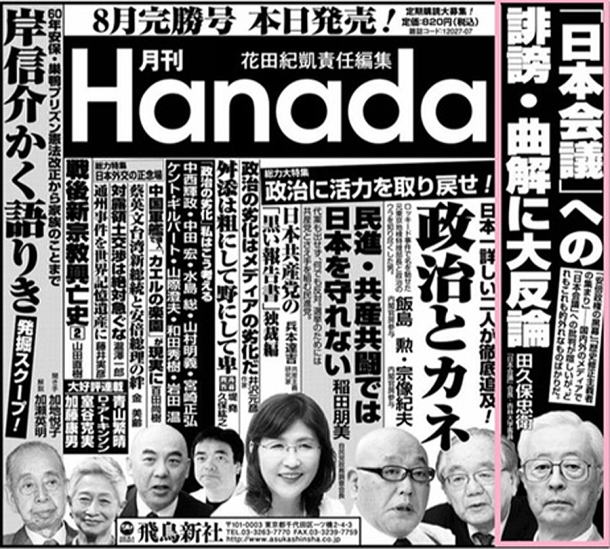 【日本会議「本会員」という匿名を名のる人間の脅迫行為,警視庁はこの犯罪を取り締まれるのか?】 【自民党政権の閣僚たちも多数会員である日本会議関係者の刑法犯罪】 ![]() 安倍内閣の主要閣僚の約8割が関連団体に名を連ねる右派団体「日本会議」を徹底解明した新書『日本会議の研究』(扶桑社)。約2カ月前の発売直後から注目を集め,いまやベストセラーとなっいる。その著者・菅野 完氏が脅迫被害を受ける“衝撃事件”が起きた。本人が語る。 「今〔6〕月20日,日本会議の正会員を名乗る人物から脅迫電話がありました。警視庁麻布警察署に被害を申告するとともに録音データなどの証拠を提出してきました」。菅野氏は日本会議を,さまざまな場所で〈巨大な組織にみえるが中身は空っぽ〉〈言説があまりに幼稚でレベルの低い組織〉などと一刀両断にしている。 一方で著書に自分の住所と携帯電話番号を公表しており,「右派団体を敵に回して大丈夫なの?」という声も一部で上がっていた。ただ,これまで抗議の電話などはいっさいなかったという。 「出版元の扶桑社に『日本会議事務総長・椛島有三』名義で出版の差し止め書が届いたりはしましたが,私個人に対する攻撃や嫌がらせはありませんでした」。 そんな状況が一変した。「携帯電話に着信があり,出ると『おまえの本を読んだ。あれを出版したことで身辺におかしなことが起きていないか?』というのです。いちおう,相手は名乗りましたが,突然のことだったため,メモできませんでした。それでも私が日本会議の仕業と確信したのは,相手が『俺は正会員だ』といったからです。日本会議には “正会員” “維持会員” “篤志会員” など会員の種別があり,いわゆるタダの “会員” はいないのが特徴です」。 菅野氏が「これは脅迫電話ですか?」と相手に問いただすとガチャリ。しばらく出られないでいると,留守電に「おいテメー。ぶっ殺すゾ,この野郎」という怒鳴り声が残されていたという。恐怖を感じ,その足で警察に向かい,被害届を出したそうだ。 「私は逃げも隠れもしないという意味を含めて,自分の電話番号を公表しています。いつかこのような脅迫があるかもしれないと覚悟していました。というのも,日本会議の取材を通じ,運動に参加してる人たちの多くが物事を多角的にみられず,レベルが低いことをしったからです。案の定,彼らは私の言論に対して脅迫行為に出た。ただ私は筆を曲げるつもりはいっさいありません。野蛮で卑劣な言論弾圧には徹底的に抗議し続けてまいります」。 安倍首相もマスコミ相手にしばしばブチ切れるが,政権の “黒幕” と称される日本会議も根っこは同じ。今回の事件で馬脚を現したのだ。警視庁は近く,菅野氏の被害届を受理し,捜査に乗り出すとみられている。 注記)http://www.nikkan-gendai.com/articles/view/news/184160 http://www.nikkan-gendai.com/articles/view/news/184160/2 http://www.nikkan-gendai.com/articles/view/news/184160/3 ここで,今日〔2016年6月25日〕朝刊の『日本経済新聞』6面と7面に出稿されていた雑誌(極右月刊誌)の広告紙面を紹介しておく。『朝日新聞』の今日朝刊には,まだ出ていない広告である。