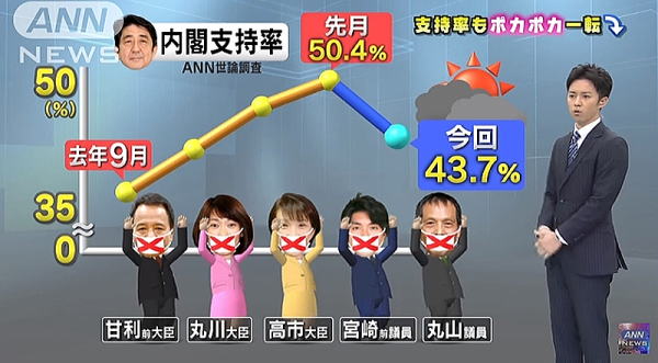 ■夢から覚め、安倍内閣の正体に気づいた それよりなにより、いよいよ安倍内閣の化けの皮が剥がれはじめたということではないか。そもそも、安倍内閣が高い支持率をキープしてきたのは、実績が評価されたわけではなく、“幻想”に支えられていたに過ぎない。 「政権の発足直後、安倍内閣が高い支持率でスタートしたのは“期待感”からだったと思う。民主党政権に裏切られた国民が、乗り換えるように、安倍内閣に期待した。株価が急上昇したのも期待感からでした。さすがに、途中から安倍内閣に対する期待は消えたが、それでも『他に代わる人もいないし』という消極的に支持する国民が多かった。なかば諦めの気持ちだったと思います。それほど民主党政権に対する失望は大きかった。安倍首相も、二言目には民主党を批判し、国民を洗脳してきた。今回、支持率が9ポイントも下落した理由は、安倍首相の不遜な態度、不倫議員の辞任、上がらない賃金など、いくつもあるでしょうが、大きな理由として、安倍内閣に対する“幻想”に国民が気づきはじめた可能性があります」(政治学者・五十嵐仁氏) 冷静に考えてみれば、国民の78%が「景気回復を実感していない」と答えているのに、支持率が50%を突破していることの方がおかしいのだ。